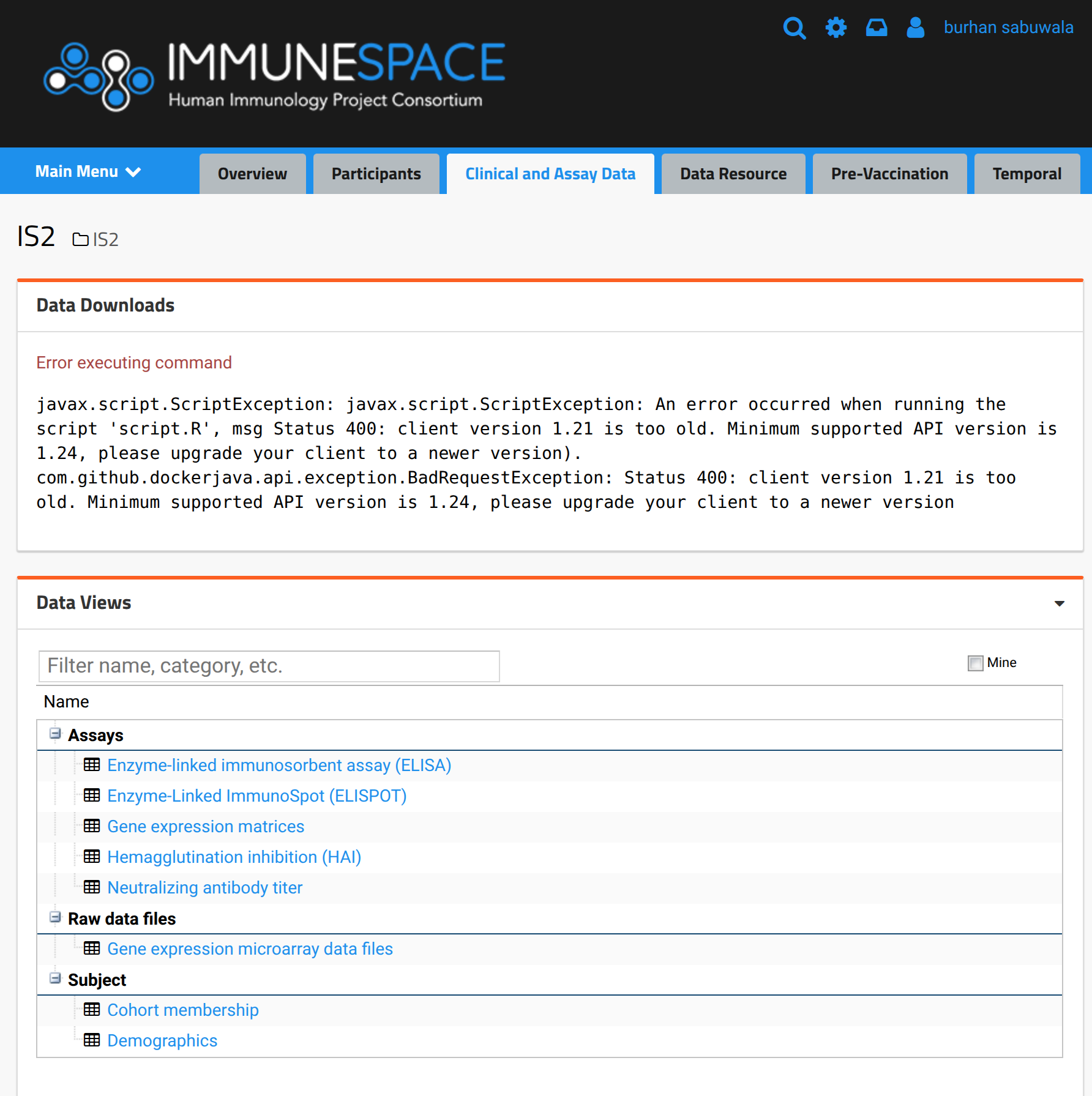 I, Burhan Sabuwala, am a graduate student in Dr Steven Kleinstein’s lab at Yale University. I’m unable to download data from study IS2. The “Data Downloads” section displays the following error. I have attached a screenshot here with this email for your reference: